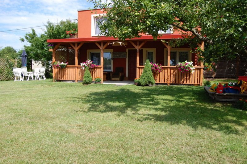 OPIS DOMU; Dom murowany, ocieplony, okna pcv, piętrowy z osobnym wejściem na piętro. PARTER;pok.2 os. łóżko 200 na 200cm. 13m. pok.2 os. z dwoma łóżkami jedynkami 9m. kuchnia